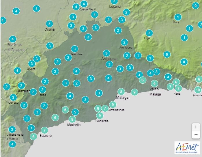 Muy buenos días, amigos de la meteo.  Cuando son las ocho de la mañana en Málaga capital, mi termómetro registra 7,8 grados pero la sensación térmica es de 2 grados debido al viento de terral de invierno. Dentro de la provincia malagueña destacar Ronda con 1,1 grados, Antequera con 3,4 grados, y Gaucín con 2 grados.