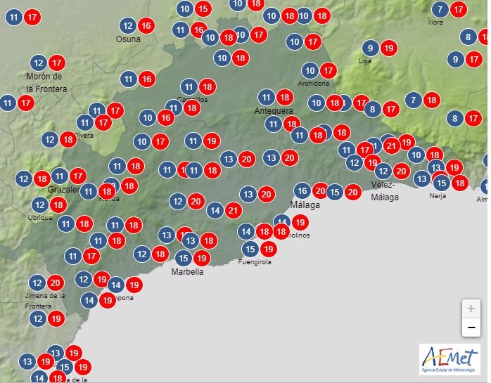 Estas son las temperaturas máximas y mínimas que prevé la Aemet.