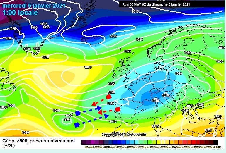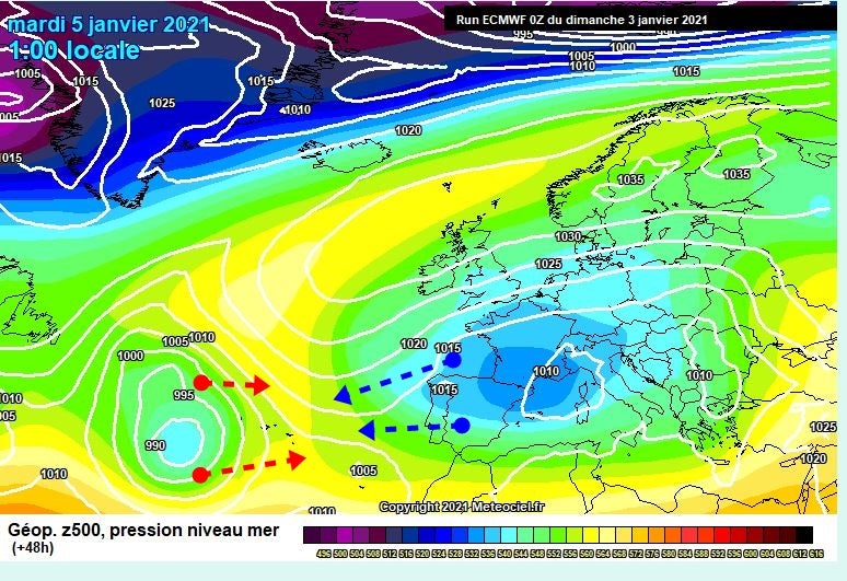 En estos dos mapas a 500 hpa actualizados del modelo europeo, lo podréis comprender mejor. En anticiclón se retira y deja un pasillo para que las borrascas atlánticas lleguen a la zona del Golfo de Cádiz. De cumplirse esto, las lluvias serían muy generosas en muchos puntos de Andalucía, con nevadas en cotas bajas en el primer envite.