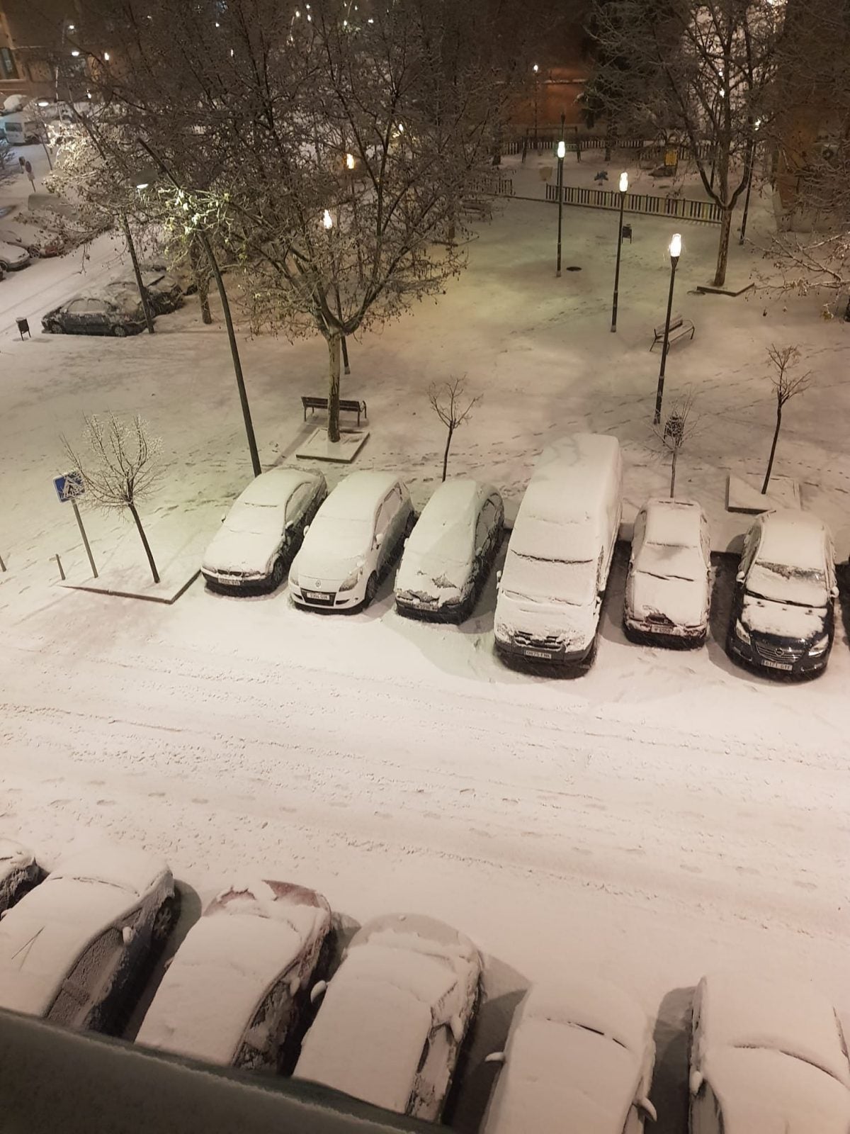 Impresionante nevada que ha registrado toda la Comunidad de Madrid, la estación de la aemet del Retiro ha registrado 34 litros, todos ellos de nieve. Están saliendo unas imágenes que pasaran a la historia. Tengo dos amigos que viven en Móstoles que ayer a las seis y media de la tarde me mandaron esta foto. En estos momentos hay mucha más nieve.