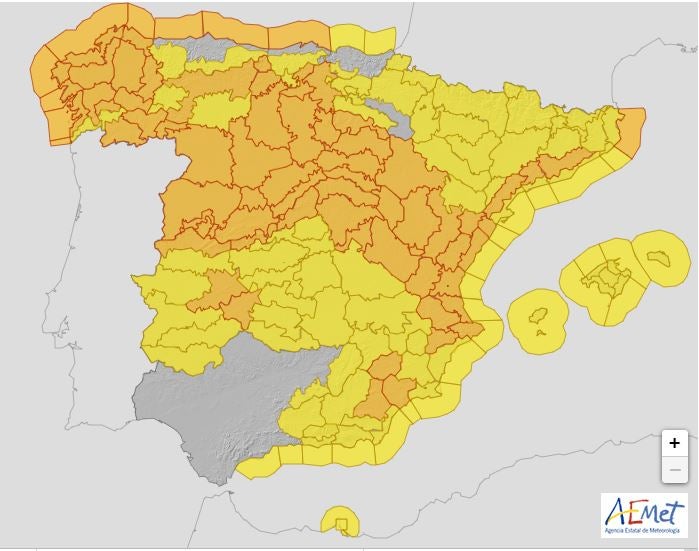 La aemet saca estos avisos por viento y olas para mañana viernes, lo más seguro es que se actualicen para más zonas.