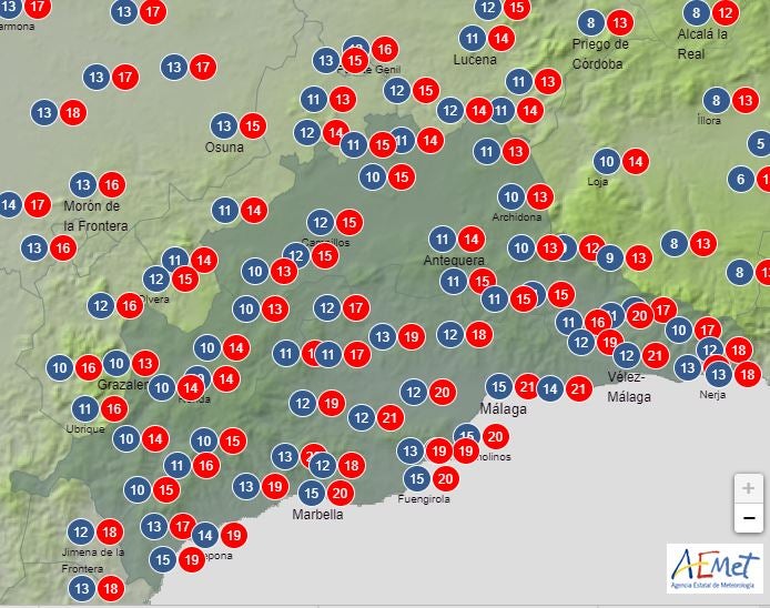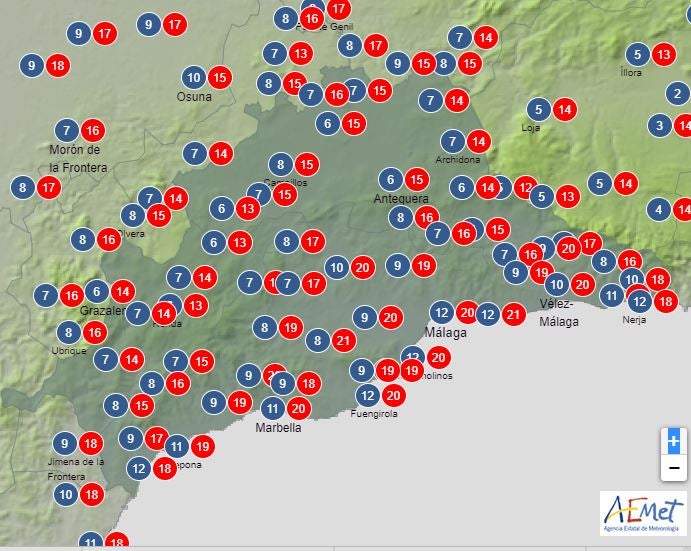 Y estas las temperaturas máximas y mínimas que prevé la aemet
