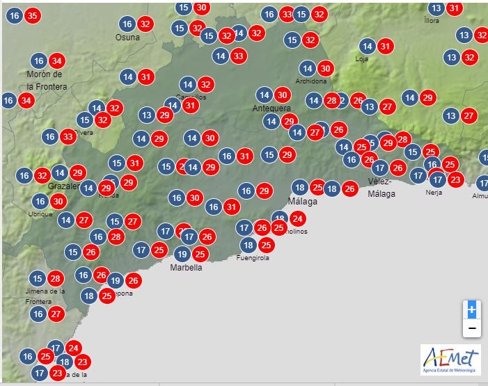 La aemet prevé estas temperaturas máximas y mínimas en la provincia de Málaga.