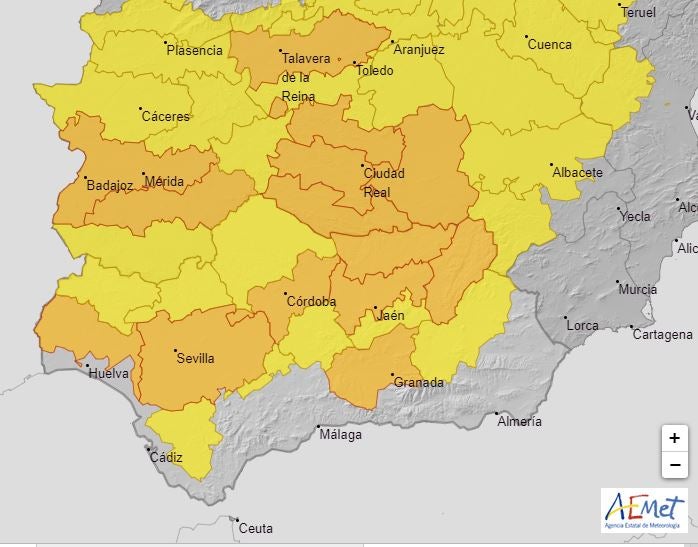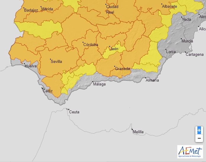 Solo las provincias de Almería y Málaga se libran de los avisos.