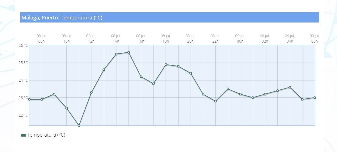 Muy buenos días, amigos de la meteo. Almohada y sabanas empapas de sudor, en toda la madrugada no hemos bajado en la capital del 85% de humedad. Menos mal que la temperatura han rondado los 23 grados, gracias a las brisas marinas, el mar sigue frío gracias al terral. Llegará la madrugada que estemos a 27 grados y con una humedad del 90%, la sensación térmica será de 33 grados.