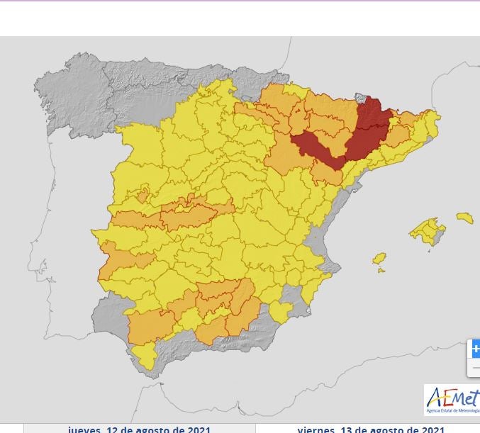 Os paso el mapa de avisos previstos para el viernes día 13 de agosto.