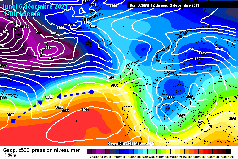 Como os he comentado más arriba, probablemente una borrasca tenga una bajada de presión muy rápida ( ciclogénesis explosiva) en el Atlántico norte entre el lunes y el martes.