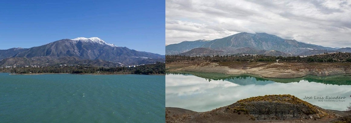 Fotos enero 2012, enero 2022. Embalse de la Víñuela.