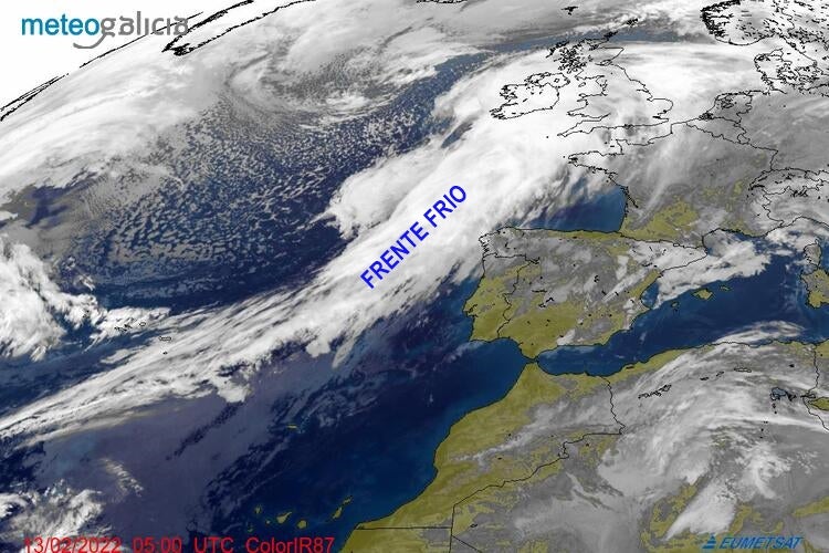 En estos momentos cuando son las ocho de la mañana el frente ya afecta a Galicia, como podéis ver en la imagen del satélite eumetsat. Fuente meteogalicia