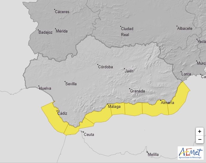 Aviso amarillo por viento en Estrecho–Cádiz: Rachas máximas: 80 km/h. Viento de levante