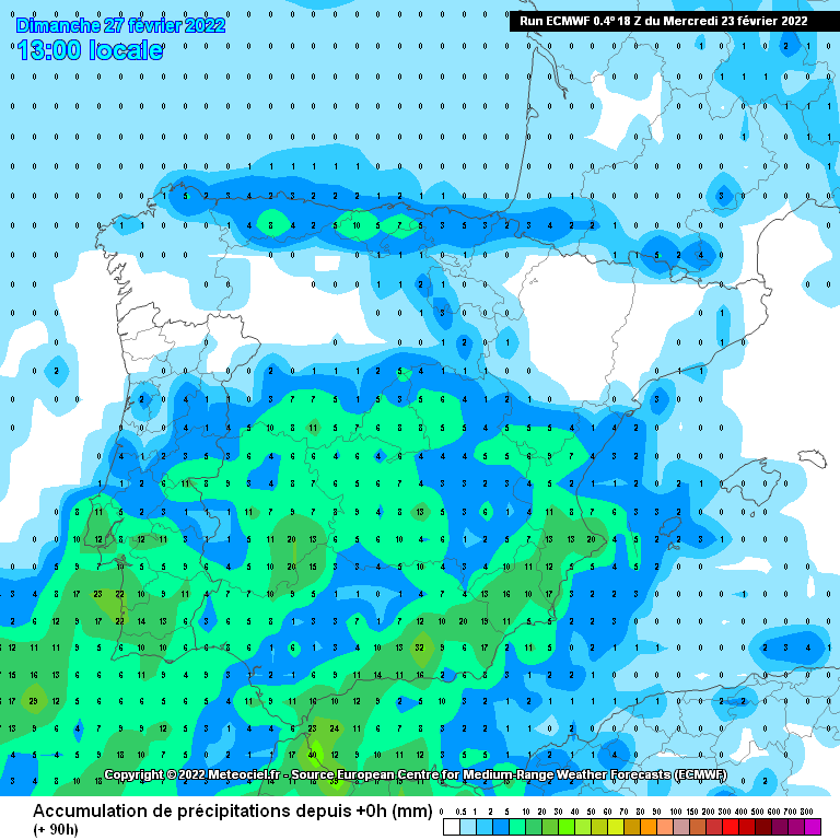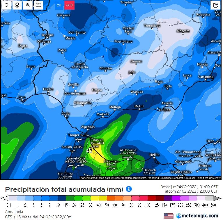 Os paso dos mapas de acumulados del modelo americano y después del europeo. Fuente meteociel, meteologix.
