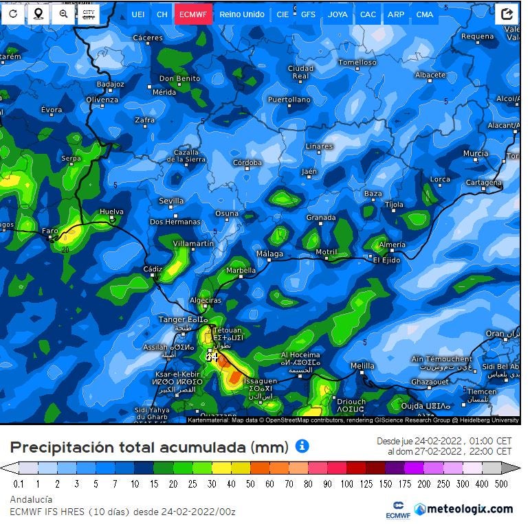 En la nueva actualización de los modelos europeo y americano, rebajan los acumulados de precipitación en toda la comunidad andaluza y provincia de Málaga. La dana de momento no dejará apenas nada.