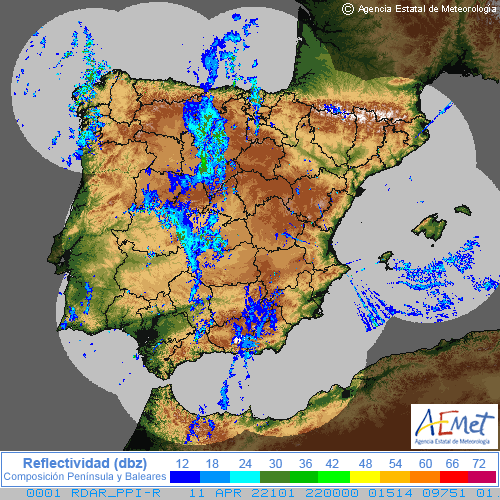 Muy buenos días, amigos de la meteo. Al final el frente se reactivo esta pasada madrugada entre las provincias de Granada y Almería, como podéis ver en esta imagen del radar nacional de las 00:30 de hoy martes. Todas las cofradías de Málaga capital salieron sin ningún problema, solo se registraron chubascos débiles por el interior de la provincia.