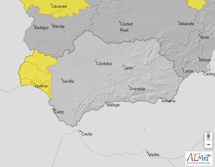 La aemet activa para hoy lunes el aviso amarillo por lluvias en la provincia de Huelva, acumulados en una hora de 20 litros.