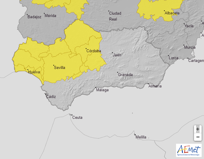 Para mañana martes se activan en las provincias de Huelva, Sevilla y Córdoba por precipitaciones de 20 y 15 litros en un hora. Reedito, el aviso se amplia a la provincia de Jaén.