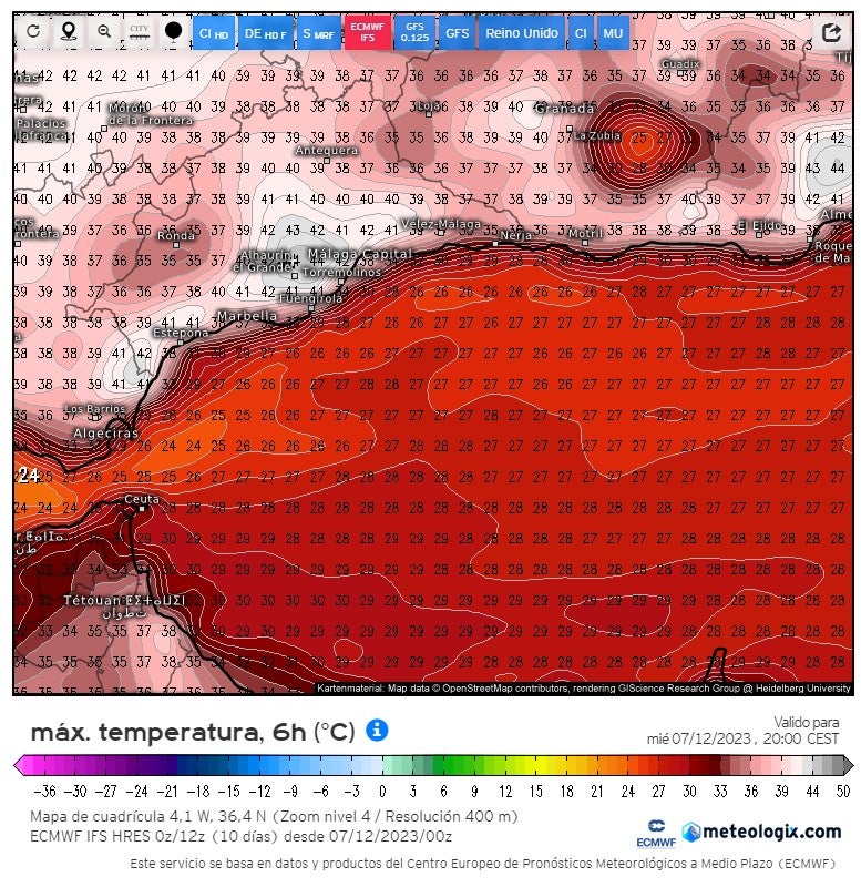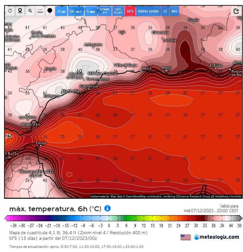Os paso las temperaturas máximas que prevén el modelo americano y europeo para hoy miércoles.