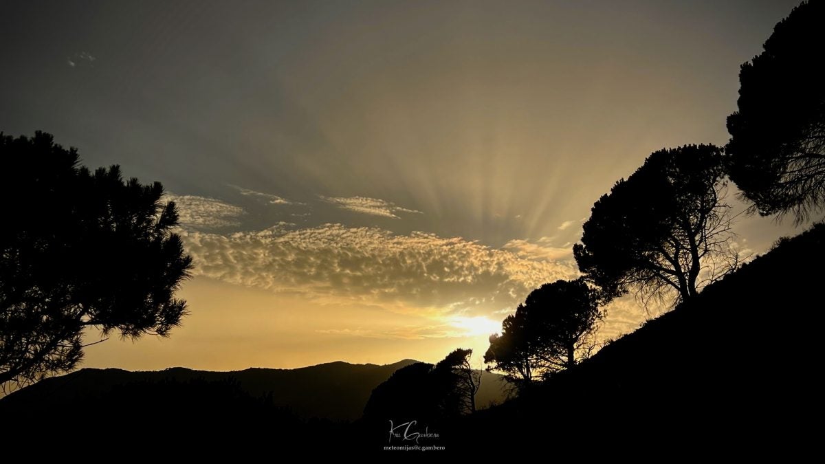 Buenos días, amigos de la meteo. Cuando son las siete y cuarto de la mañana en Málaga capital, mi estación registra 27.8 grados, la humedad es de 36% y sopla poniente aterralado con rachas moderadas. Nuevamente estamos en aviso amarillo por altas temperaturas en Sol y Guadalhorce de 38 grados. Hay probabilidad de que el terral entre en el Rincón de la Victoria en algunos momentos del día.