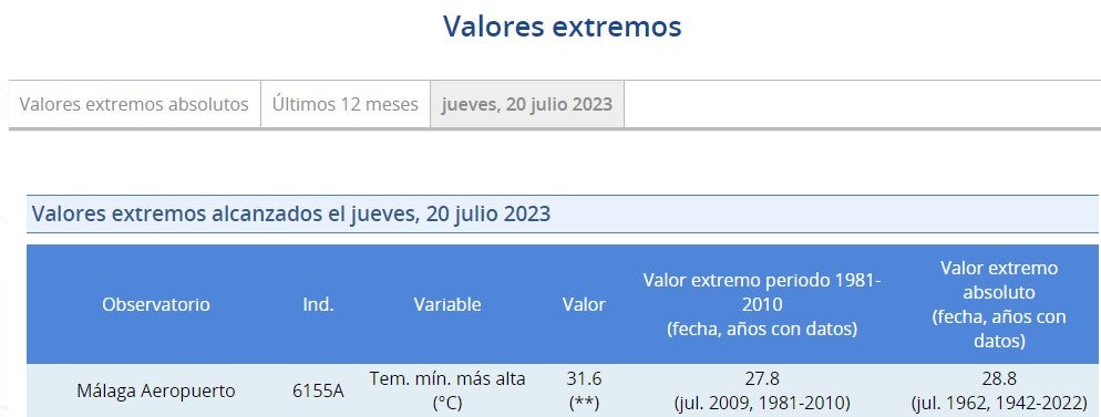Ayer se registraron estas máximas, fuente aemet.