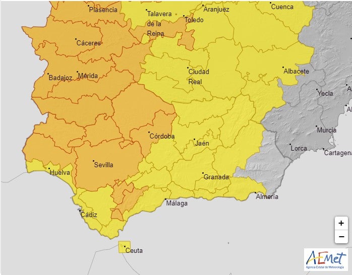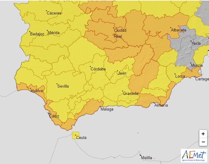 Primeramente, comentaros, que el frente se espera en la provincia malagueña a última hora de hoy, tener paciencia. La aemet ha activado el aviso naranja por rachas de viento de 90 km/h en la costa occidental de Málaga y Guadalhorce. Sigue el aviso naranja por lluvias en la comarca de Ronda, 30 litros en una hora y 40 en doce horas. Se ha desactivado el naranja por lluvias en la Axarquía, de momento está en amarillo por acumulados de 25 litros al igual que la comarca de Antequera. En lo que respeta a Málaga capital y su costa en amarillo por 25 litros en una hora y 50 litros en doce horas. Mucha precaución esta noche con el viento, evitar paseos por la zona arbolada.