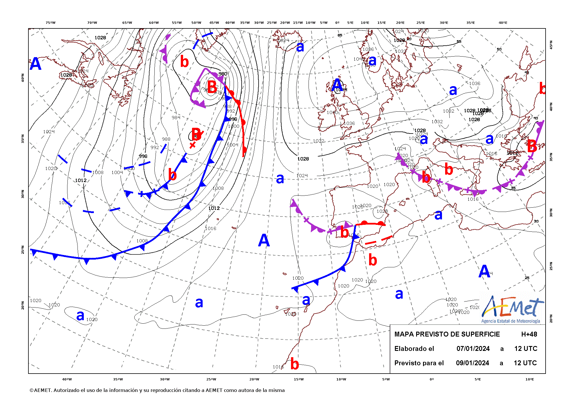 Buenas tardes, amigos de la meteo. Mañana martes las lluvias visitarán la provincia malagueña, siendo más probables a partir del mediodía y por la tarde noche. Pueden ser de nieve a partir de 1800 o 2000 metros. El sistema de bajas presiones se trasladara desde el Estrecho al nordeste peninsular, os paso el mapa de superficie de la aemet.