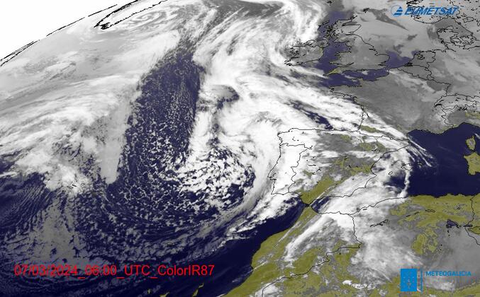 En esta imagen en infrarrojo del satélite eumetsat, podéis ver el frente frío que ya afecta a la provincia de Huelva. A la provincia de Málaga llegará a partir del mediodía, en la capital lo espero a partir de las de las 15:00 horas, o un poco más tarde, todo dependerá si se adelanta o no. Una vez pase, se abrirán claros.