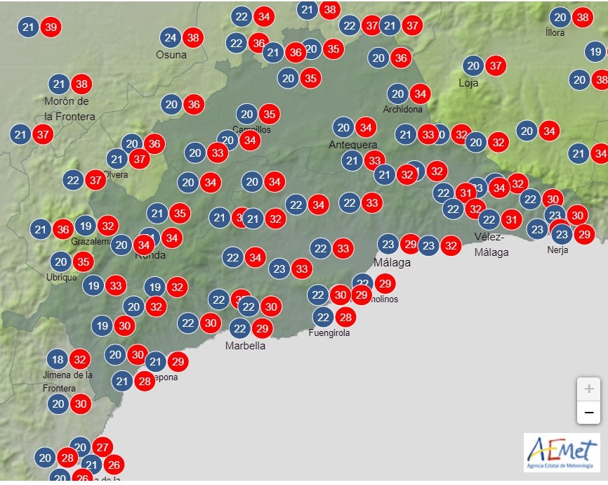 Ayer jueves destacar estas temperaturas máximas que se dieron en la provincia malagueña.