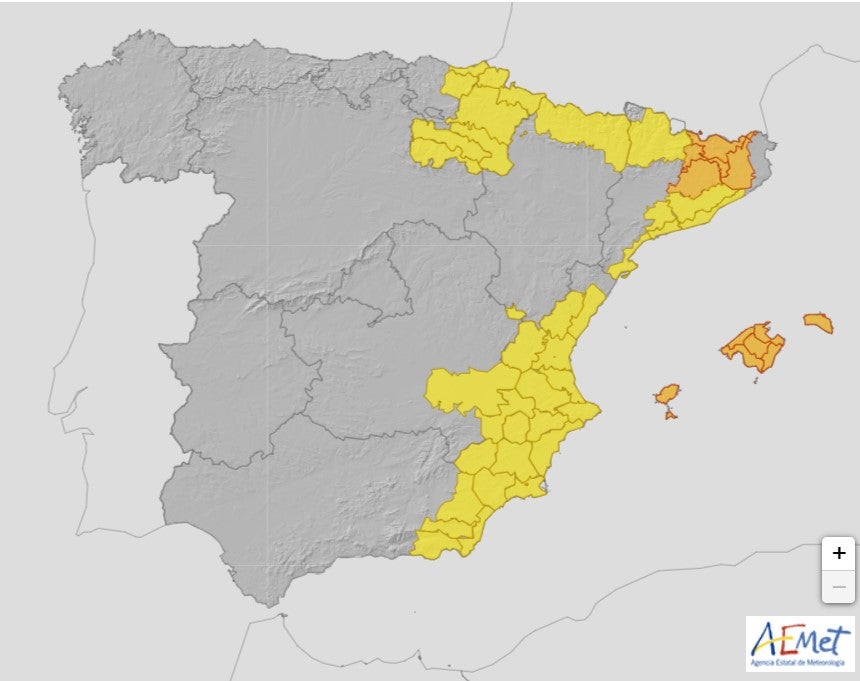 Tras el episodio de ola de calor que hemos tenido durante el pasado fin de semana, la llegada hoy de una vaguada desde el Atlántico, que mañana se aislará en torno al área mediterránea formando una DANA (Depresión Aislada en Niveles Altos), dará lugar a una progresiva y acusada inestabilización atmosférica en gran parte del este peninsular y Baleares. Como consecuencia se espera que en estas zonas se produzca precipitaciones, localmente fuertes o muy fuertes, acompañadas de tormentas, y en muchos casos de granizo y rachas muy fuertes de viento, suponiendo un importante riesgo para las personas y bienes expuestos al fenómeno. La incertidumbre inherente a este tipo de fenómenos hace que sea muy difícil precisar las zonas de mayor impacto, ya que ligeros cambios en la posición de la DANA pueden hacer cambiar la intensidad y distribución geográfica de los fenómenos asociados a la misma. Hoy, martes 13, se espera que las precipitaciones y tormentas sean localmente fuertes o muy fuertes en gran parte del sistema Ibérico, medio y alto Ebro, Pirineos y oeste de Cataluña. Es probable, que aparte de producir precipitaciones intensas, las tormentas den lugar a granizo, que localmente puede ser grande, y a rachas de viento muy fuertes. De forma menos probable y más dispersa, las tormentas podrán afectar a otras zonas del cuadrante nordeste peninsular y en torno al sistema Central. Con la llegada de la vaguada, penetrará una masa atlántica mucho más fresca que producirá hoy un descenso generalizado de las temperaturas en gran parte del interior peninsular, recuperando valores más próximos a lo normales para la época. Mañana, miércoles 14, con el progresivo aislamiento de la DANA en torno al área mediterránea, es probable que las precipitaciones y tormentas más intensas se trasladen a gran parte del tercio oriental peninsular y Baleares. Ya desde la madrugada, se espera que la inestabilidad se intensifique en torno al litoral y prelitoral central catalán, extendiéndose a lo largo del día a gran parte del interior de Cataluña, E-SE peninsular y Baleares. En estas zonas, los chubascos y tormentas podrán ser muy fuertes, venir acompañados de granizo, que localmente puede ser grande, y de rachas de viento muy fuertes.