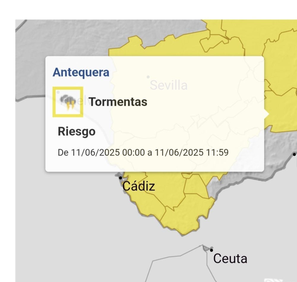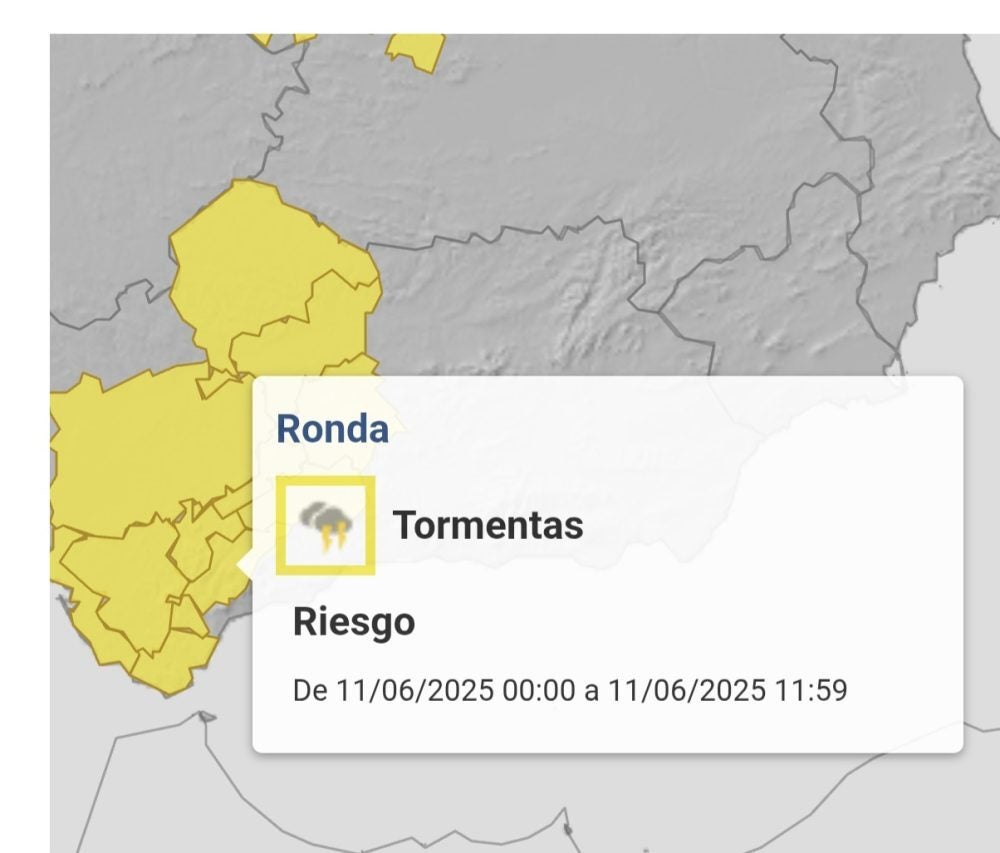 Buenas noches, amigos de la meteo. La aemet activa el aviso amarillo por tormentas en las comarcas de Ronda, Antequera, Sol y Guadalhorce