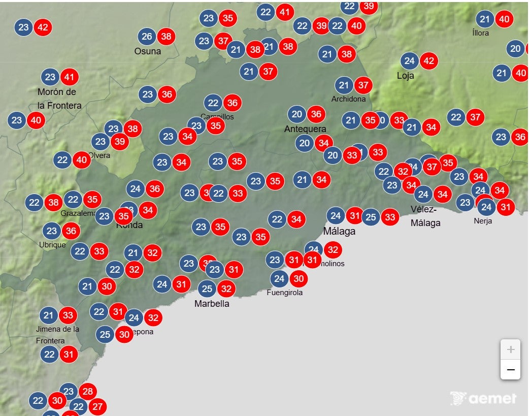 Os paso las temperaturas máximas y mínimas que prevé la Aemet desde mañana domingo al martes en la provincia malagueña. Como la mar está más caliente, las noches y madrugadas no serán tan llevaderas. Domingo