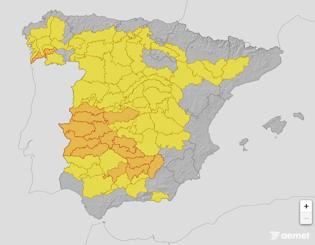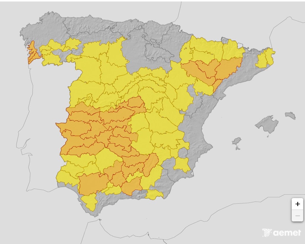 De momento, el aviso especial por ola de calor elaborado por la Aemet dura hasta el jueves siete, pero es muy probable que hoy domingo o mañana lunes, cuando lo actualicen, lo amplíen hasta el sábado o el domingo de la semana que viene. Ya veremos si se activan avisos rojos.