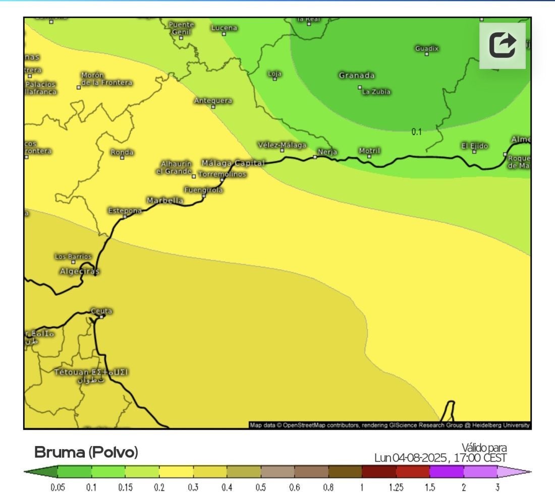 Buenas tardes, amigos de la meteo. Vuestra pregunta es fácil de entender. En estos momentos y desde ayer, debido a la masa de aire seca africana, tenemos polvo en suspensión; esto hace que veamos los cielos de este color.