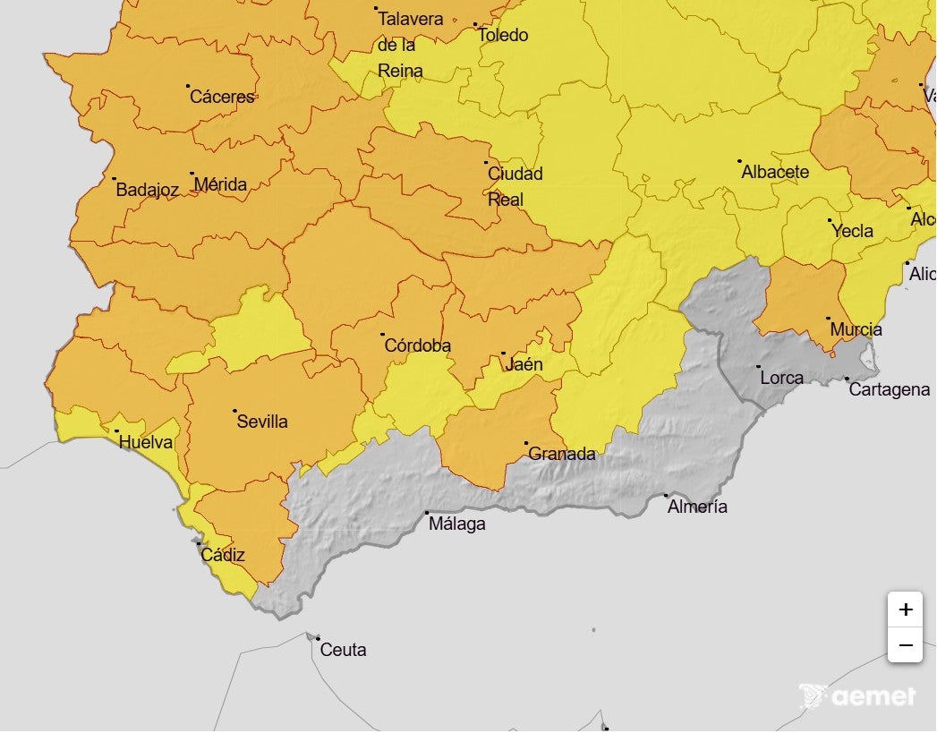 Recordar que el umbral para el aviso amarillo en las comarcas de Antequera y Ronda es a partir de 38 ºC.