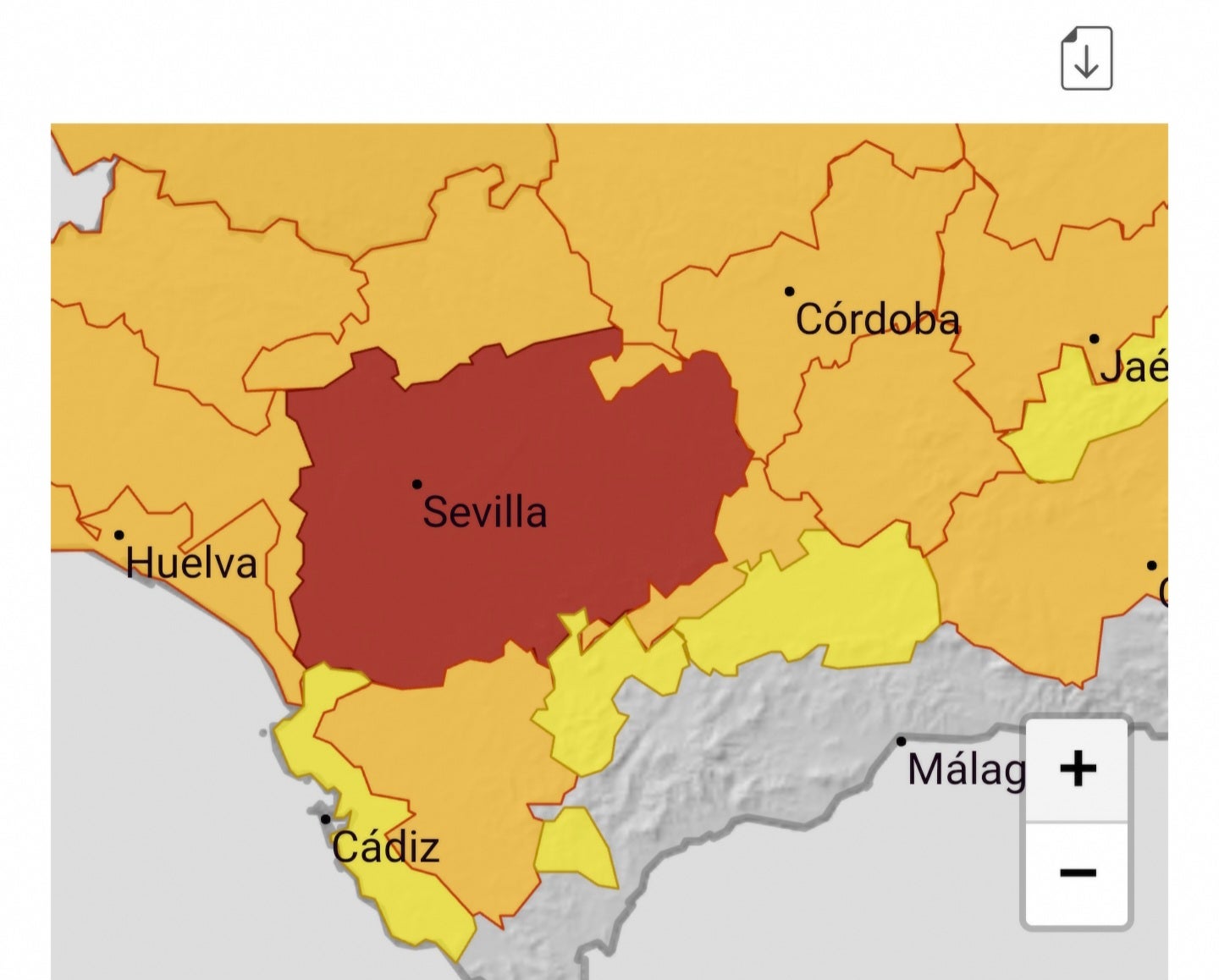 Hola de nuevo, amigos de la meteo. Actualizo nuevamente el blog, para comunicaros que la Aemet activa el aviso rojo por temperaturas de 44 °C en la provincia de Sevilla. En la provincia de Huelva será naranja en toda la provincia.
