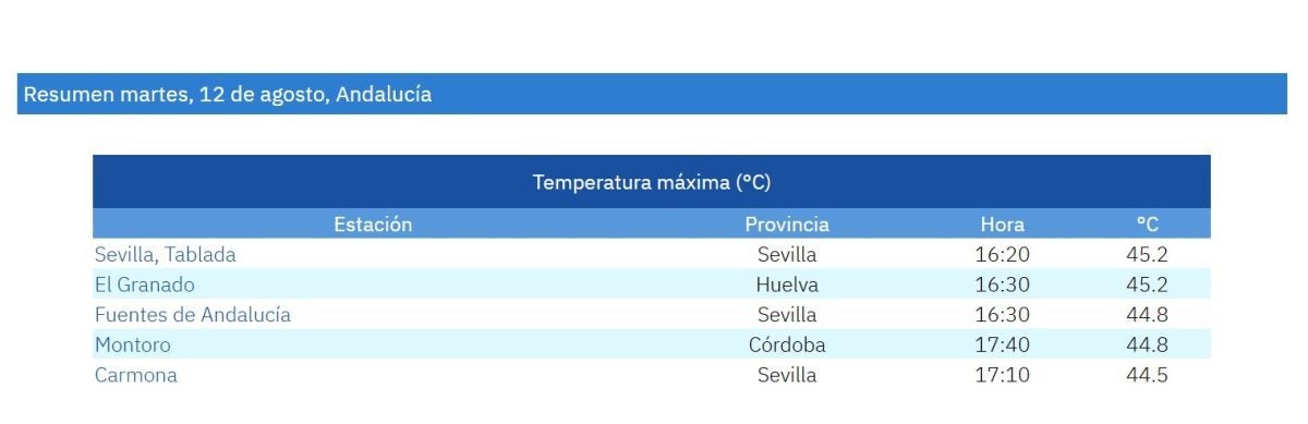 En otras provincias de Andalucía se sobrepasaron los 45 ºC, 44, 43 y 42 ºC.