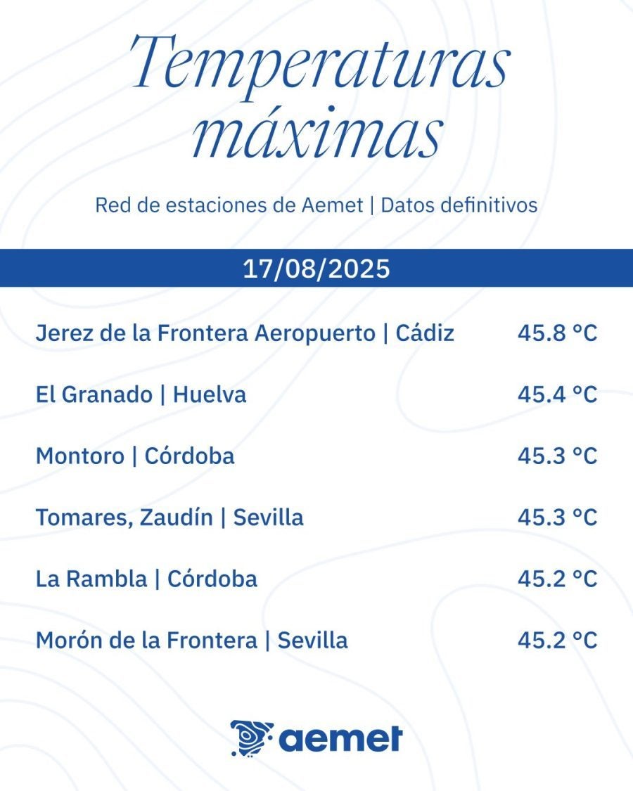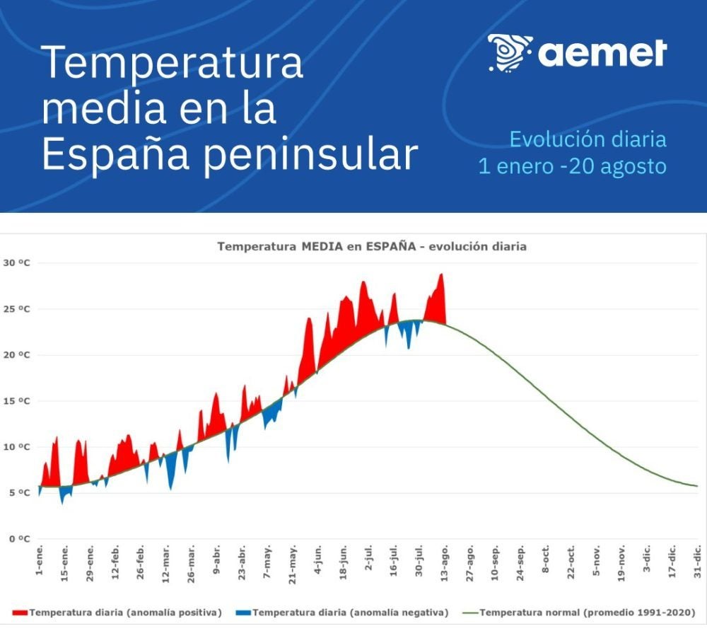 32,7 ºC de máxima y 21,6 ºC de mínima Aemet Aeropuerto