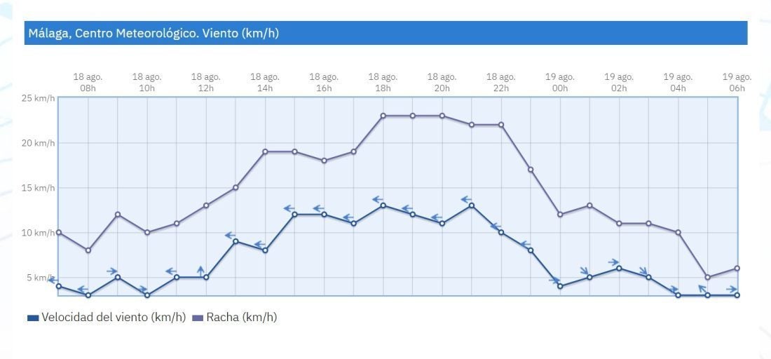 Os paso la grafica de viento del Centro Meteorológico , como podéis comprobar tuvimos levante hasta las doce de la noche.
