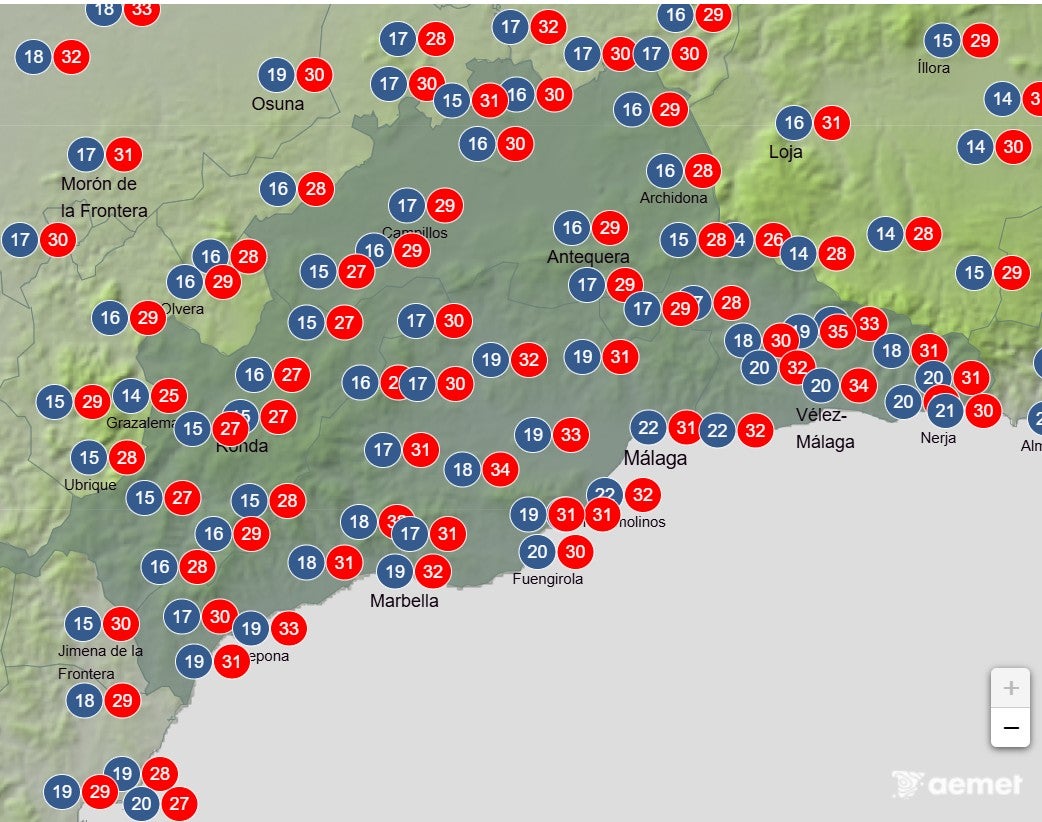 Fijaros en las máximas y mínimas en las comarcas de Ronda y Antequera; estarán por debajo de la media.