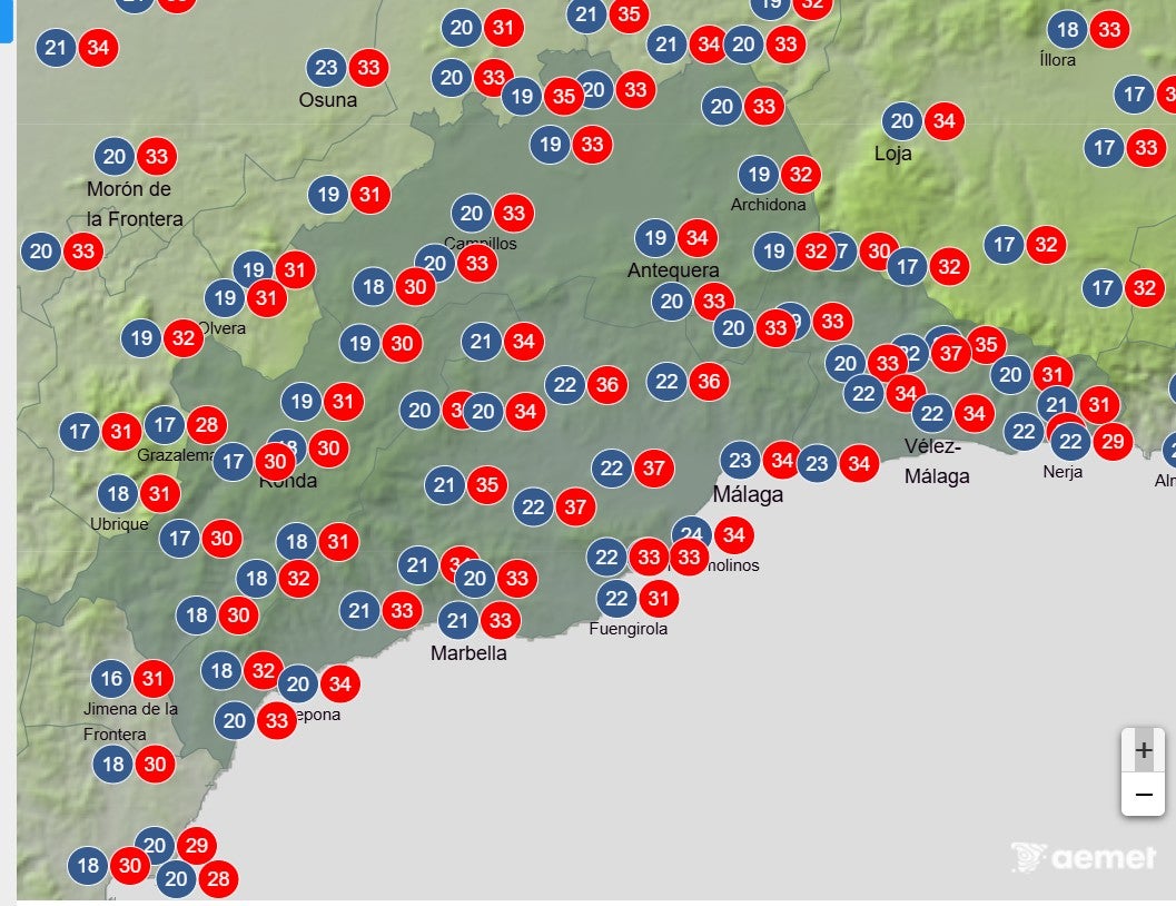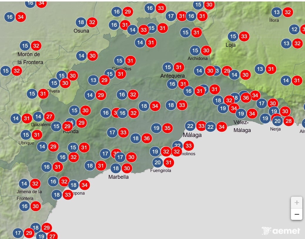 Reedito: La Aemet acaba de activar el aviso amarillo en Sol y Guadalhorce por máximas de 36 ºC.