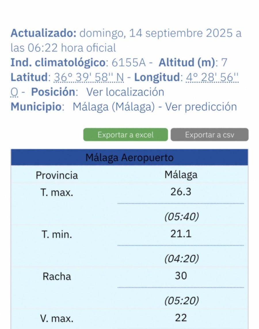 Buenos días, amigos de la meteo. Se cumplieron las previsiones y sobre las dos de la madrugada empezó a entrar el terral en algunos puntos de la provincia malagueña, en Málaga capital ha ido por barrios, al Puerto no ha llegado. Sobre las seis de la mañana se ha quitado el terral.