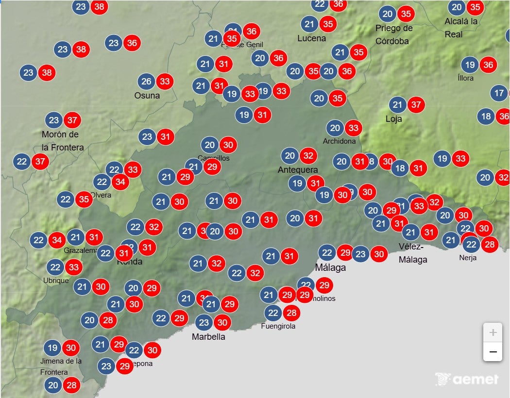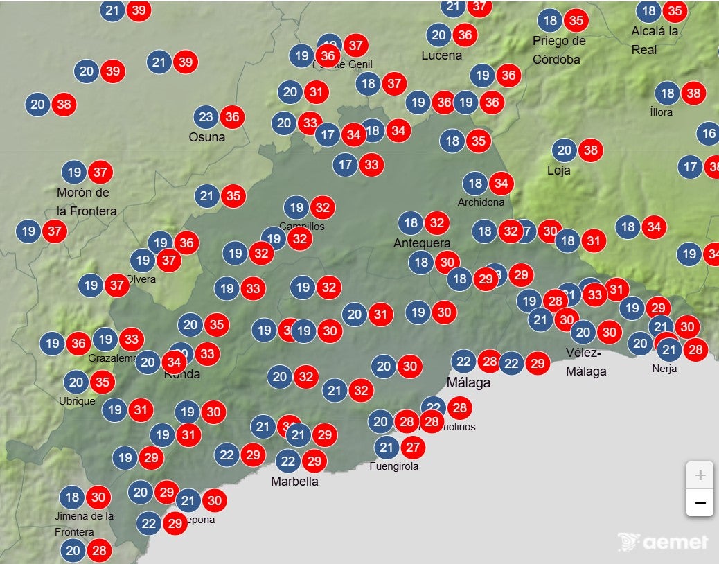 Os pongo las máximas y mínimas previstas hasta el viernes en la provincia malagueña.