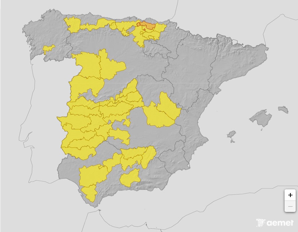 Buenos días, amigos de la meteo. Estamos en septiembre, ¿verdad? Os paso el mapa de avisos por altas temperaturas para hoy jueves 18 de septiembre. Los avisos amarillos en las provincias de Granada, Jaén, Córdoba y Sevilla son por 39 ºC, incluso en algunos puntos 40°C, y en la provincia de Cádiz por 38 ºC.