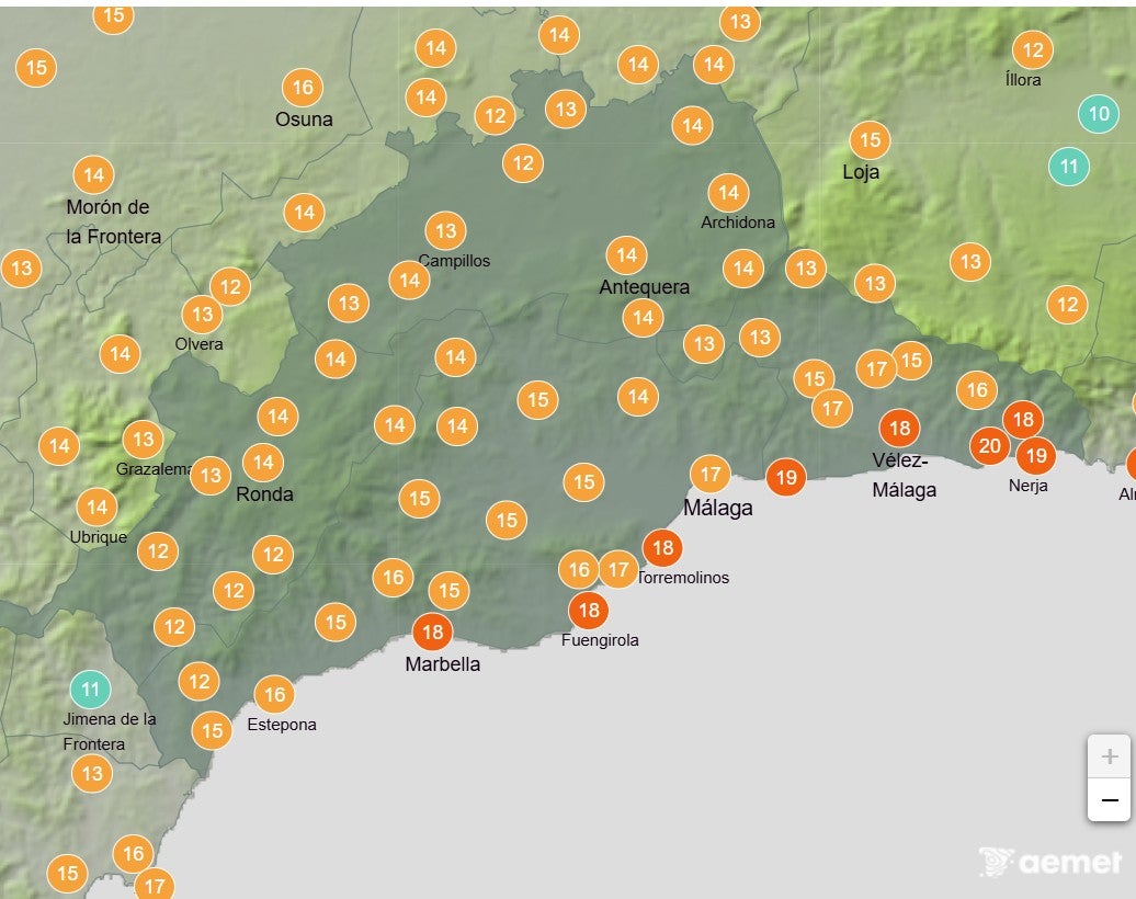 Las temperaturas máximas bajarán en toda la provincia malagueña, las mínimas subirán.