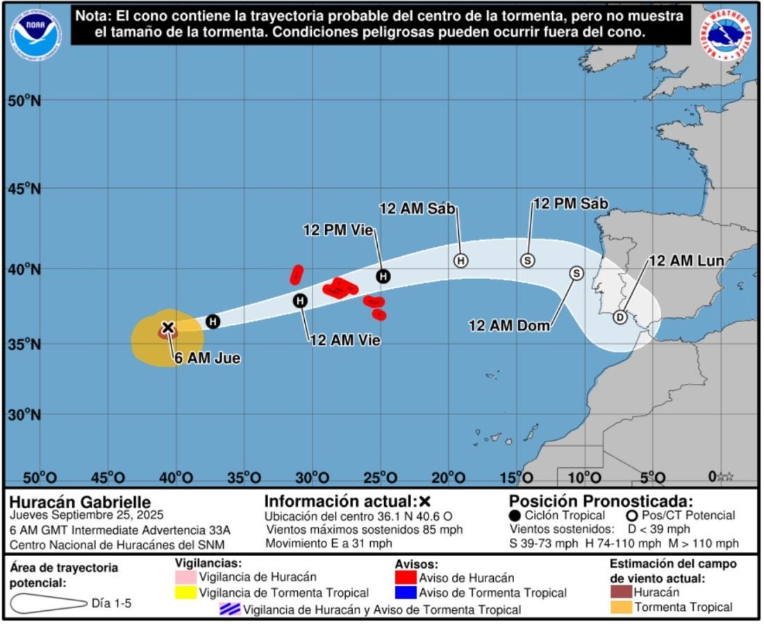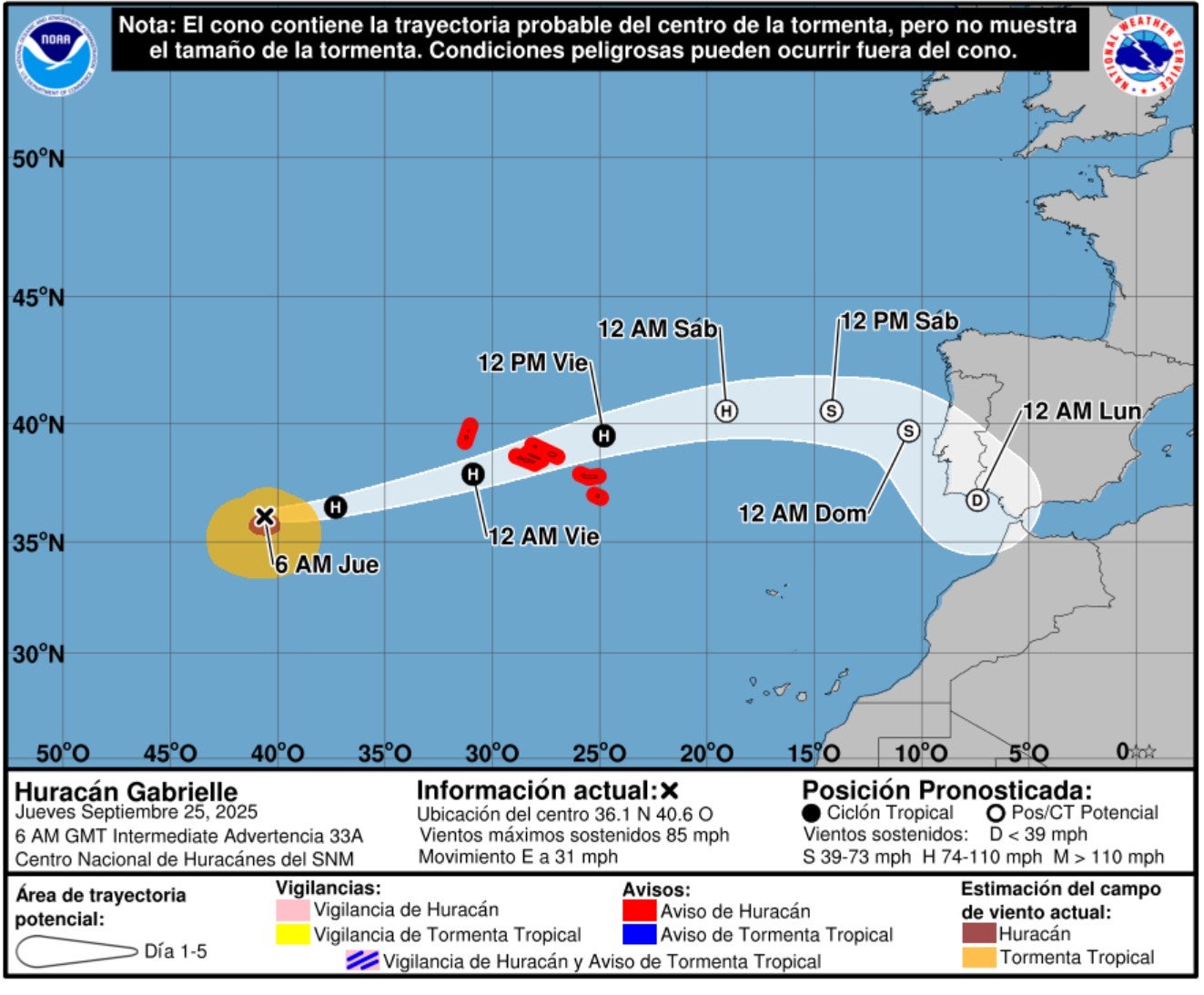El huracán Gabrielle llegará esta noche a las Islas Azores como huracán categoría 1; hace unos días llegó a 4.