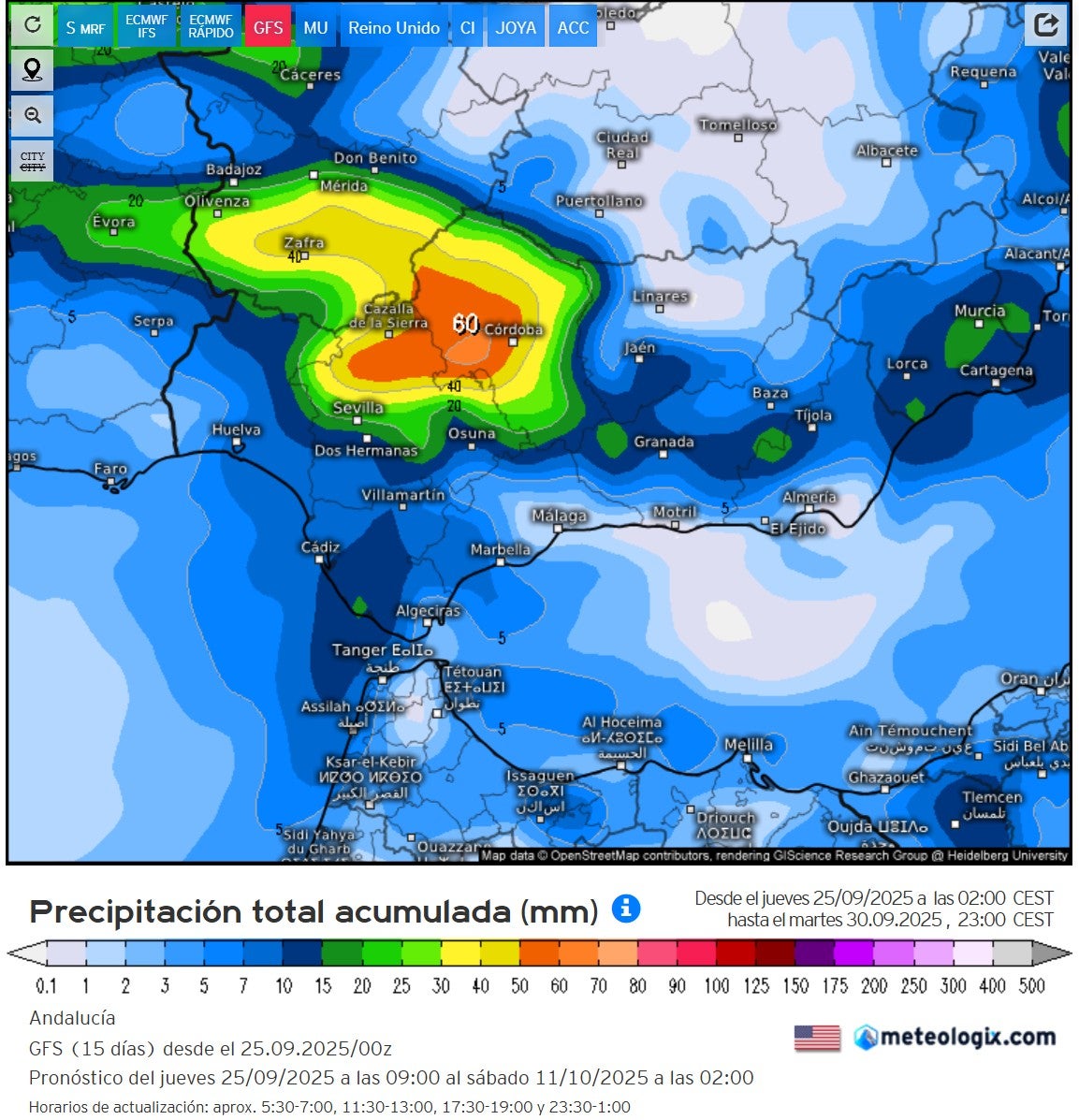 Os pongo los acumulados de precipitación lunes y martes, que de momento dan los modelos europeo y americano. Mañana cambian seguro.