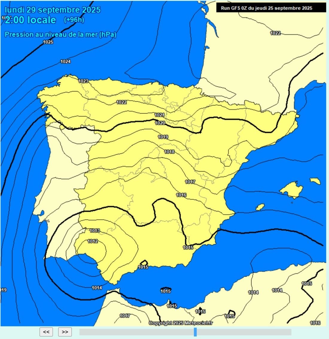 El Centro Nacional de Huracanes (NOAA) en su última actualización y los modelos europeo y americano dan una probabilidad alta de que llegue a la nariz de Portugal para más tarde bajar y situarse entre el cabo de San Vicente y el golfo de Cádiz. Pero aún puede cambiar.