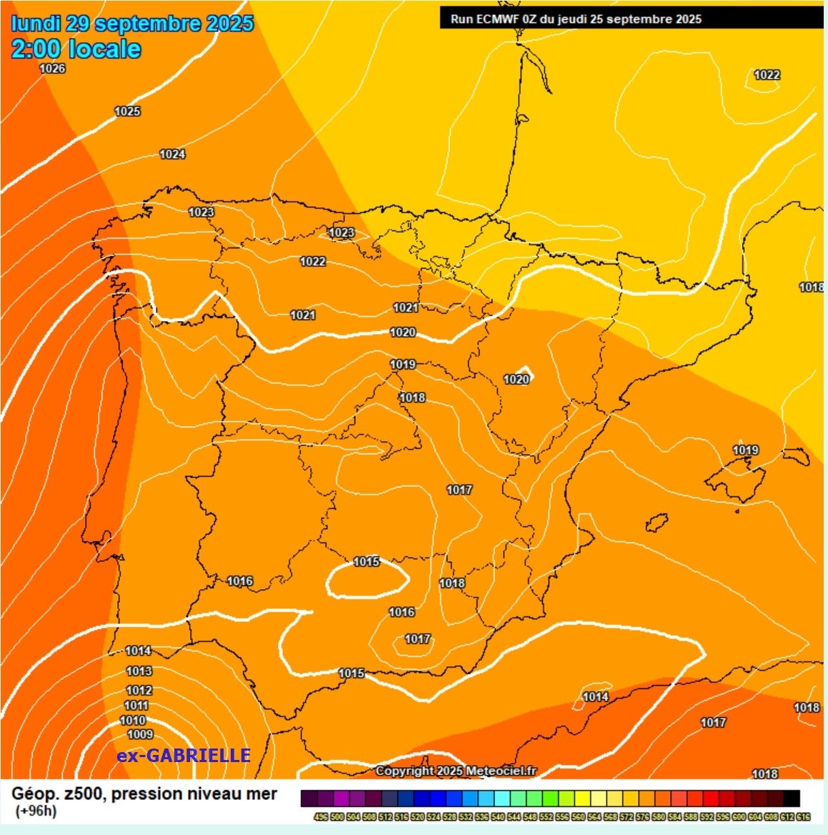 El modelo europeo posiciona ex-Gabriell para el lunes en esta zona. Llovería muy poco.