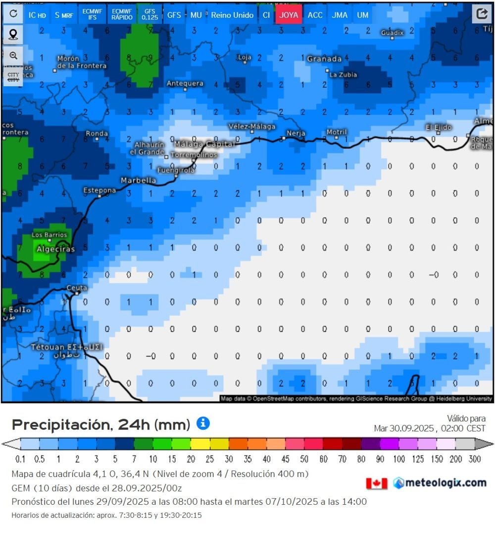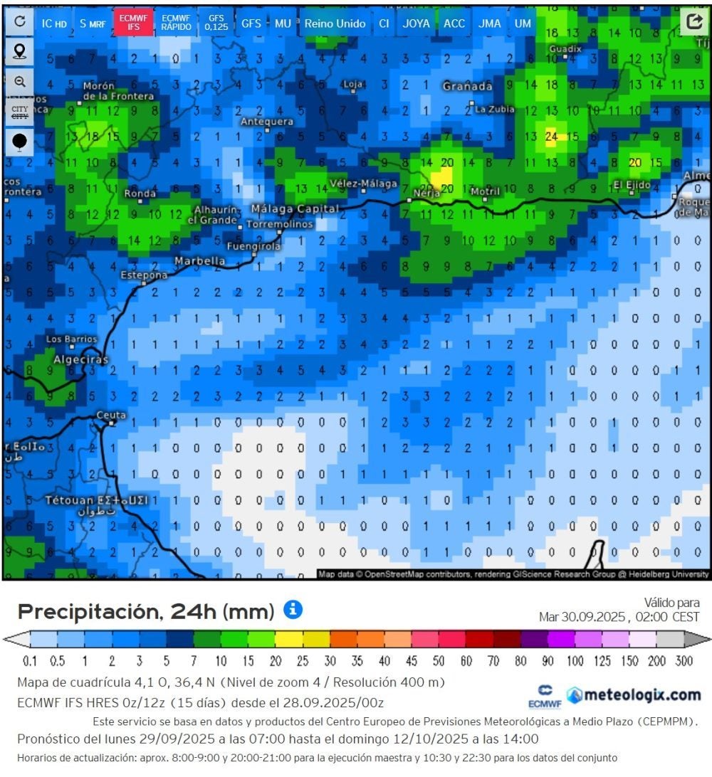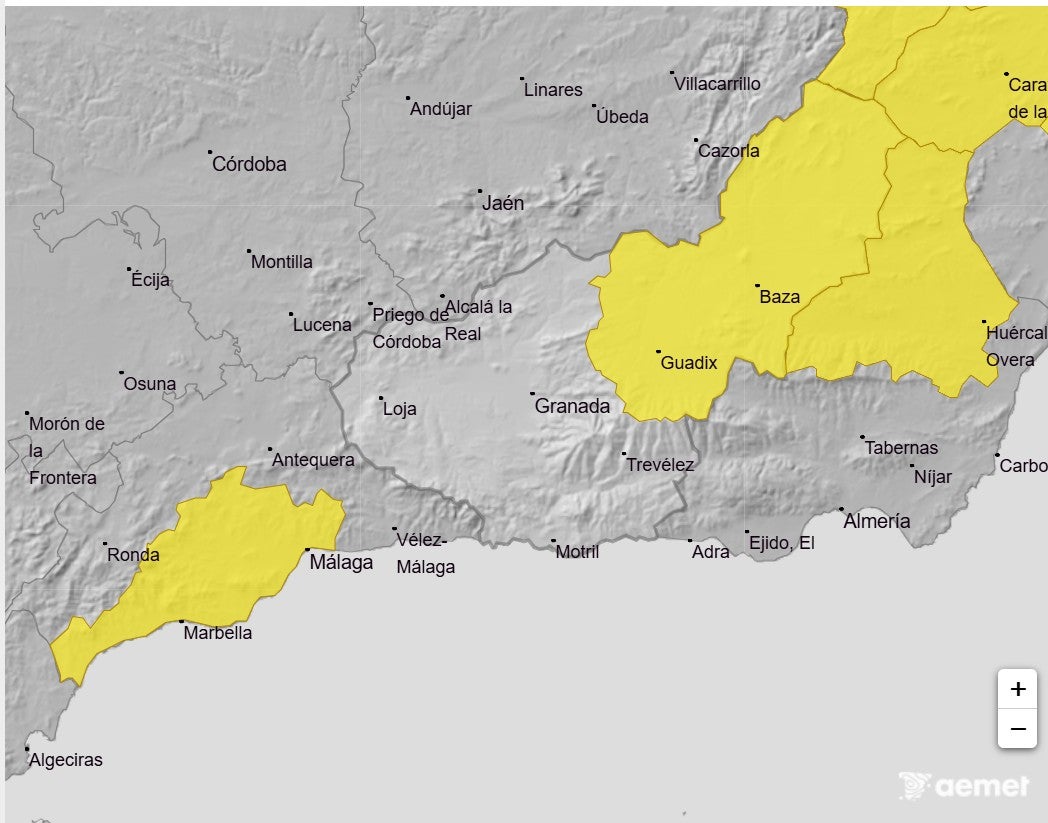 Para mañana lunes, se ha desactivado el aviso en la zona del Estrecho, el de Málaga de momento no, ya veremos en nuevas actualizaciones. Se han activado avisos nuevos en zonas de las provincias de Granada y Almería.