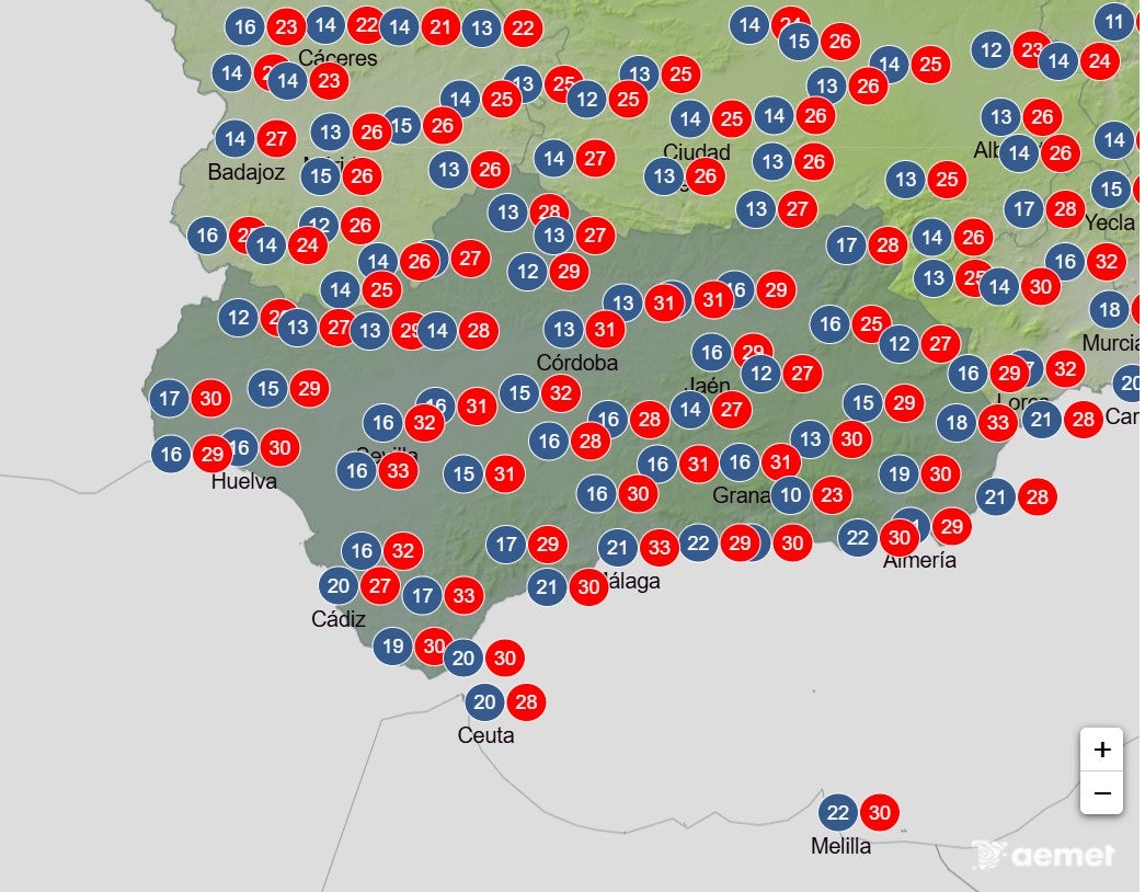 En otras provincias de Andalucía también se esperan temperaturas máximas y mínimas muy por encima de la media.