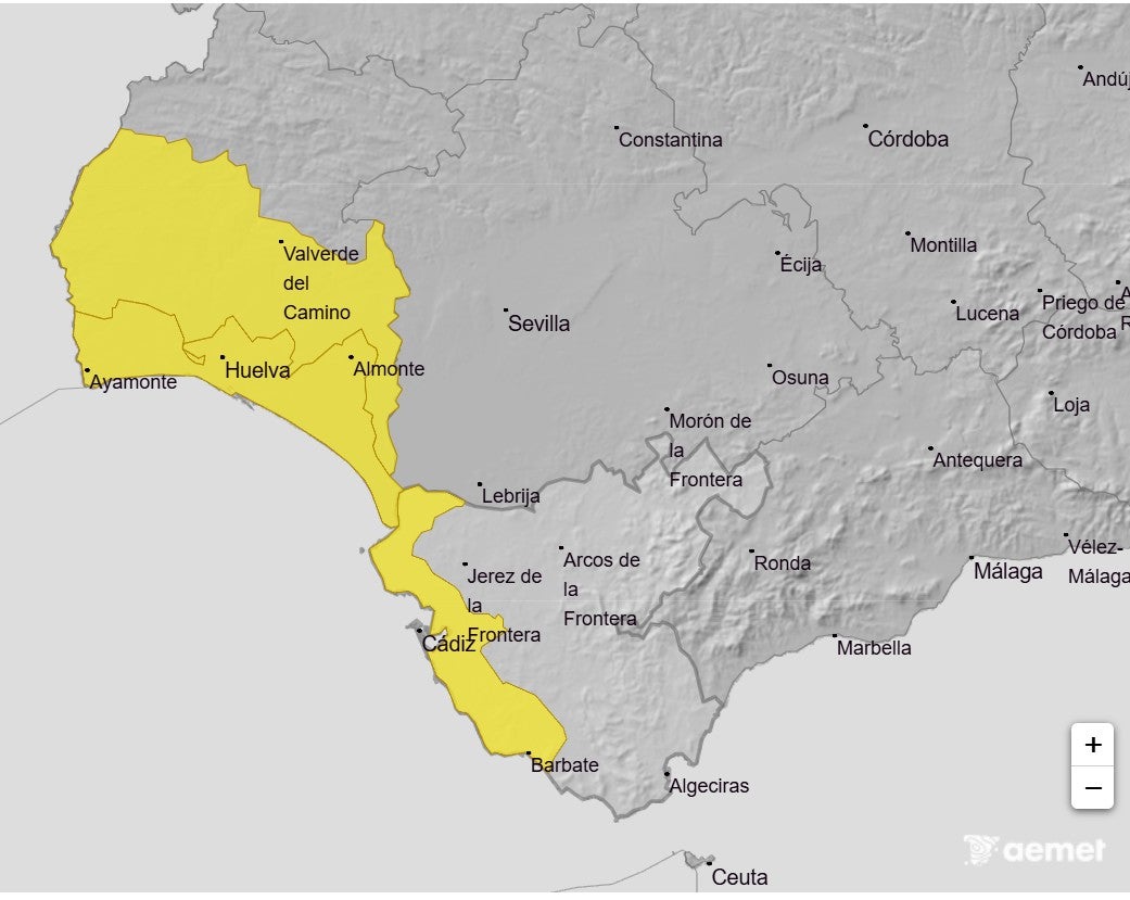 Buenos días, amigos de la meteo. Actualizo el blog para informaros de que la Aemet activa el aviso amarillo por lluvias y tormentas en el litoral gaditano por acumulados en una hora de 15 mm, también en el litoral de Huelva, Andévalo y Condado.