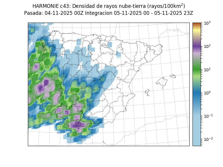La Aemet ha sacado estos mapas en su última actualización. El primero de descargas eléctricas.